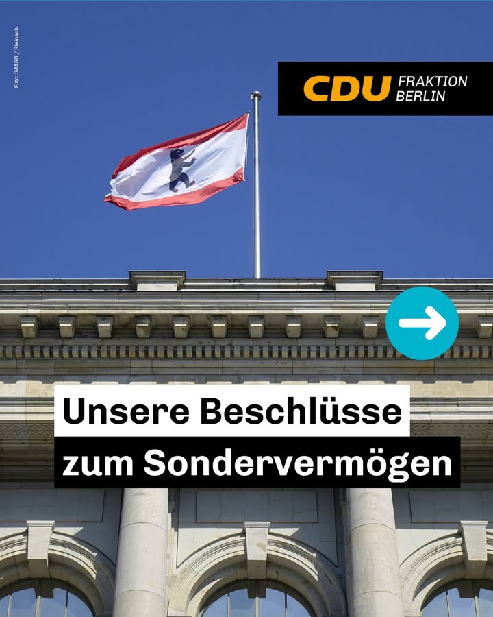 mehrDas Sondervermögen des Bundes wird gezielt eingesetzt, für das, was unsere Stadt wirklich braucht:🚒 moderne Einsatzfahrzeuge und bessere Ausrüstung für Polizei, Feuerwehr und Katastrophenschutz🏗️ neue Brücken, Straßen und Wasserwege🏫 sanierte Schulen, Kitas und Sportstätten🏥 starke Krankenhäuser und Forschungseinrichtungen🌳 Investitionen in Klimaschutz und Wasserinfrastruktur